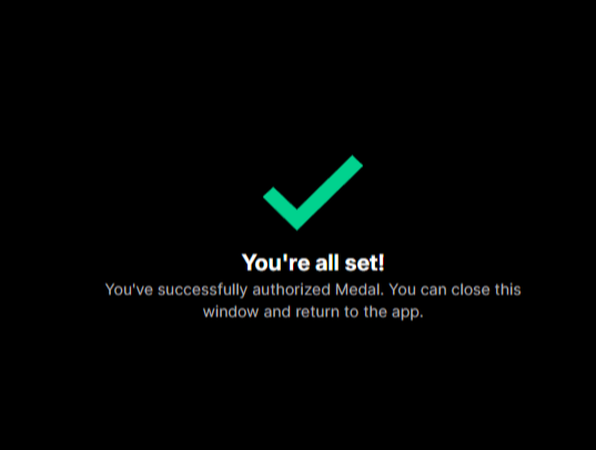 | Upon successful authentication, a new tab will open with the "You're all set!" message. You have now successfully linked your Riot account with Medal! | ![]() |