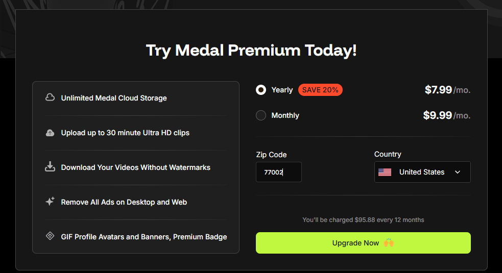 You've asked, and we listened! We are so excited to announce the release of Medal Premium! Medal Premium is a subscription within Medal that will give you access to advanced features across all Medal platforms. What features you may ask? Well, let's have a look!